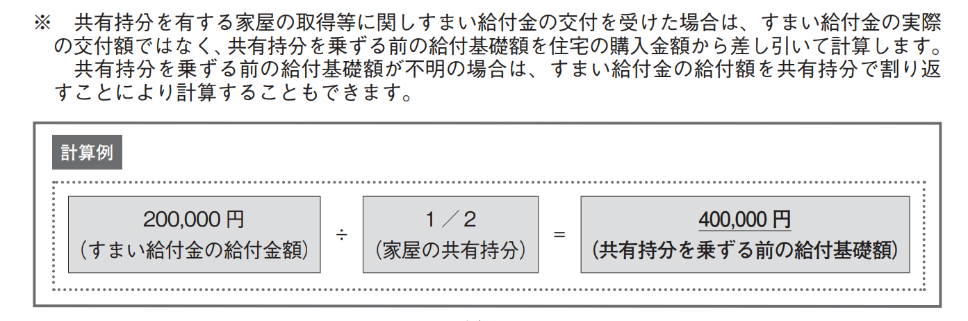 そんなとき、共有の住宅について住宅ローン控除を受ける場合の「住まい給付金」の取扱いはどうなるのでしょうか。